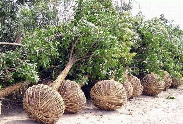 4、路途遠,氣候過(guò)冷、風大或過(guò)熱時,根部(bù)必(bì)須蓋草包等物進行保護。 樹木吊卸時,注意輕(qīng)放,選擇穩定(dìng)著力點。著力點的選擇可憑經驗先選擇一點,通過用吊機輕輕往上提來觀察(chá),是否是最佳著力點(diǎn),通常試吊2—3次(cì)即可找到。起吊(diào)點選好後進行輕吊輕放,保證大樹不受損傷,以保(bǎo)證大樹成活。